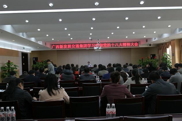 為深入學習貫徹落實黨的十八大會議精神,在組織廣大黨員干部職工參加支部集中學習、科室集中學習、業(yè)余自學的基礎上,12月6日上午,廣西新發(fā)展交通集團黨委在南寧召開了集中學習貫徹黨的十八大精神專題輔導大會,集中聽取了中國社會科學院黨組成員、副院長兼當代中國研究所所長、黨組書記李捷同志關于《深入學習貫徹十八大精神》的視頻專題輔導講座。集團公司領導班子成員、集團公司機關全體人員,直屬各單位領導班子成員、黨委辦公室負責人,廣西公路橋梁工程總公司各分(子)公司黨政一把手共80余人參加了會議。講座從黨的十八大主題、科學發(fā)展觀、中國特色社會主義道路、全面建成小康社會的新論斷及關于黨的建設要求的總體布局等五個方面進行了深入解答,讓廣大黨員干部職工受益匪淺。