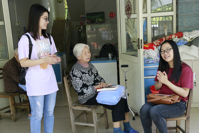 志愿者們圍坐在老人旁邊,詢問他們的生活情況、身體情況,叮囑他們注意保暖、保重身體,傾聽他們的人生故事和叮嚀告誡,并為給他們唱紅歌、讀故事、講新聞,豐富他們的精神生活。老人們對(duì)志愿者的到來感到十分高興,和志愿者一起合唱《團(tuán)結(jié)就是力量》、《歌唱祖國(guó)》、《沒有共產(chǎn)黨就沒有新中國(guó)》等歌曲。護(hù)老院處處洋溢著歡樂的氣氛,老人們的臉上洋溢著幸福。